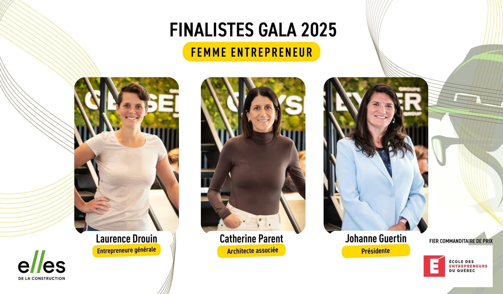 Le 9 octobre dernier se tenait le gala Elles reconnaissent 2025 présenté par ELLES de la construction où Catherine Parent, associée de la firme, était nominée dans la catégorie Femmes entrepreneures. Cette catégorie vise à récompenser des entrepreneures visionnaires qui repoussent les limites, brisent les stéréotypes et font rayonner leur expertise dans l’industrie de la construction.
