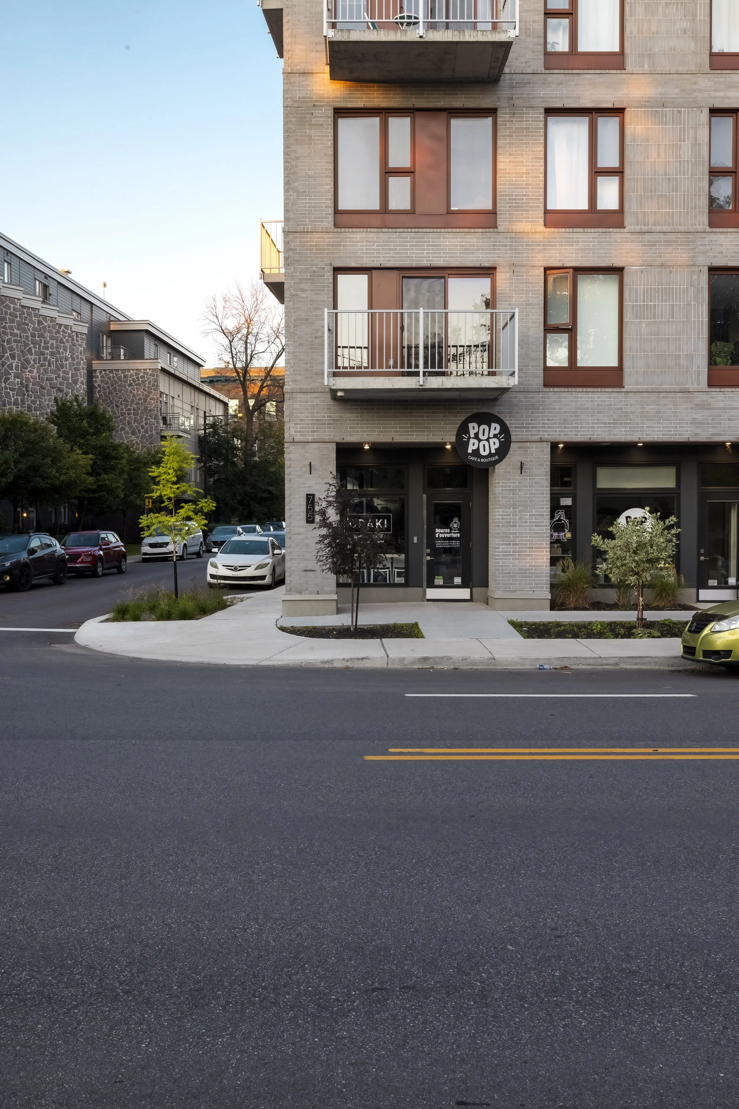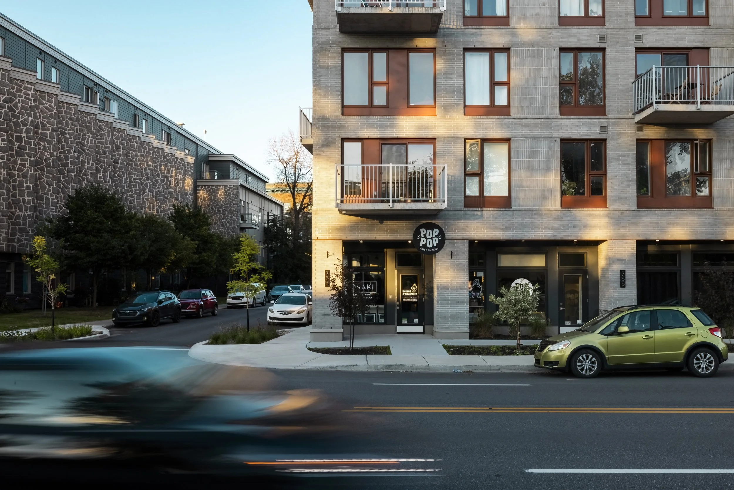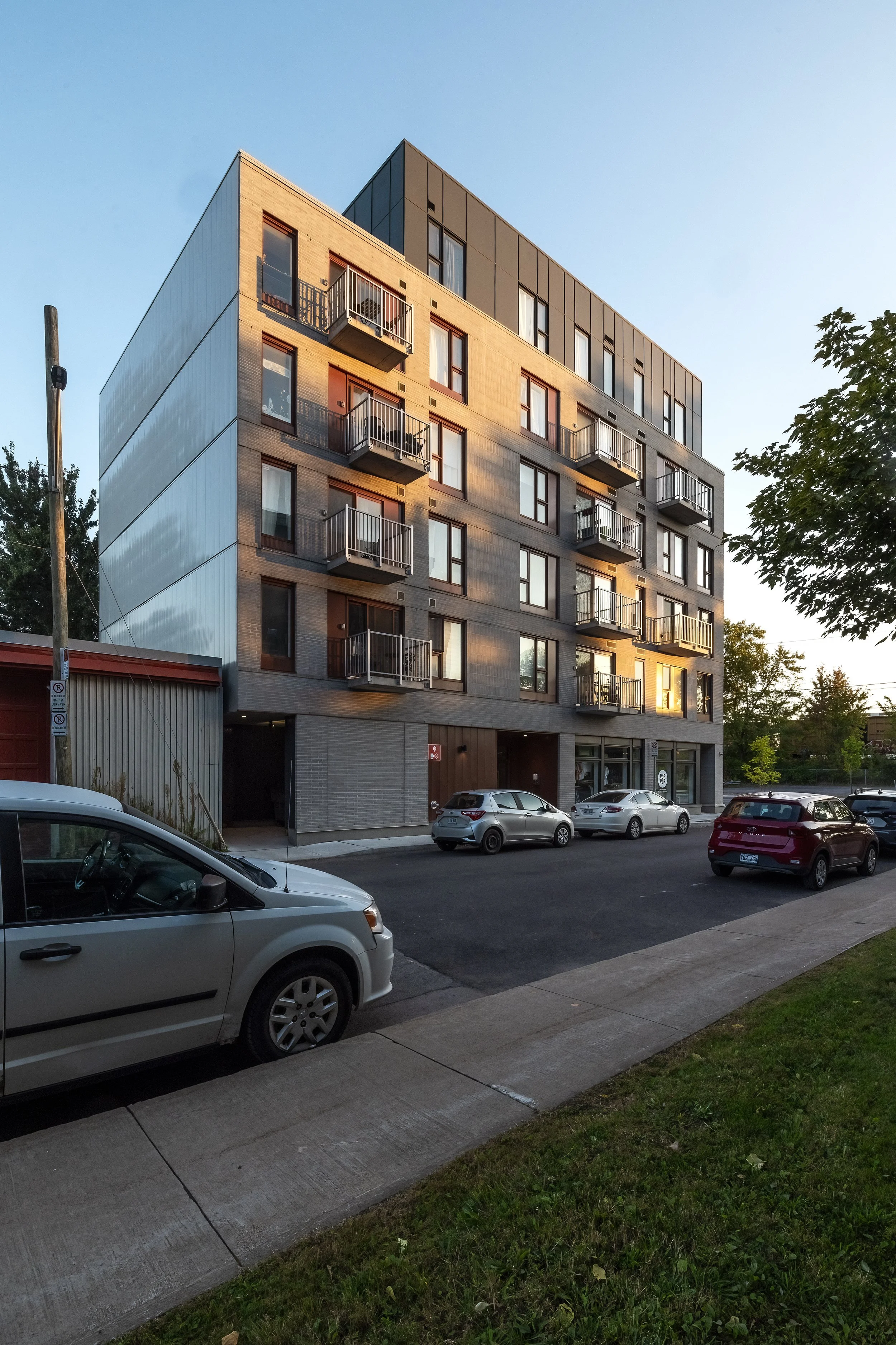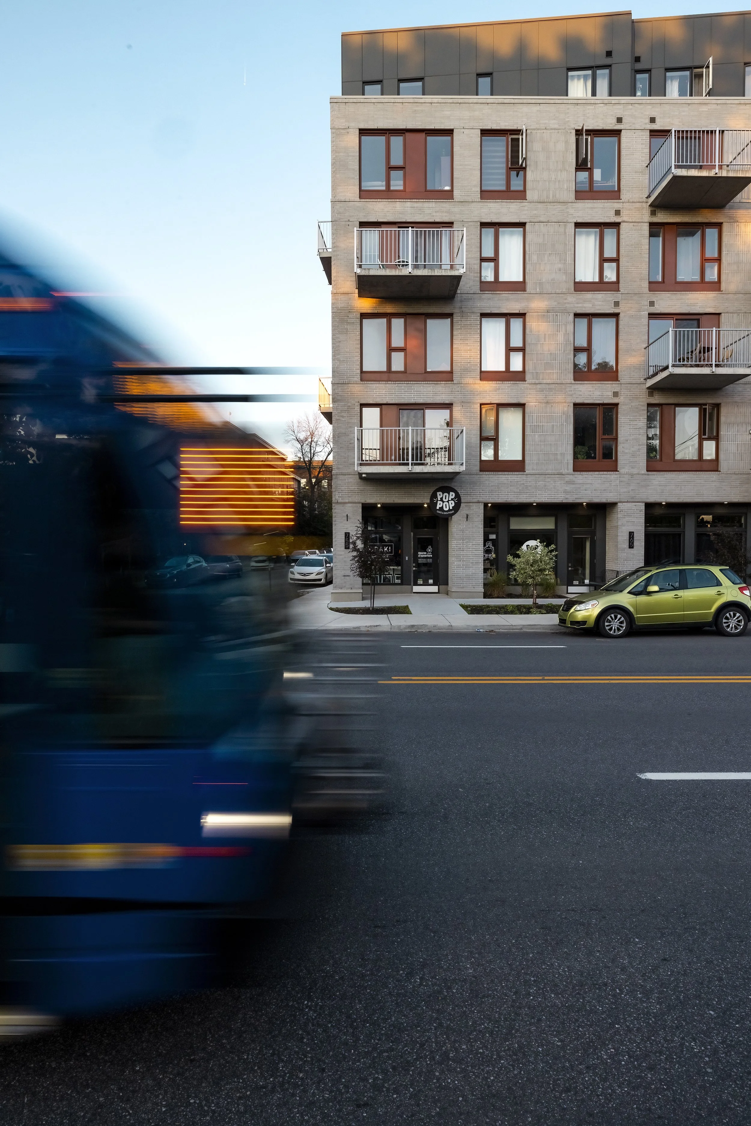 Conçu sans stationnement automobile, Franky mise sur le transport actif et collectif, réduisant à la fois l’empreinte écologique, les coûts de construction et les loyers. Libéré des voitures, le sous-sol accueille plutôt de généreux espaces de rangement à vélos, communs et privés. Son succès est manifeste : toutes les unités ont été louées avant même la fin du chantier, confirmant l’intérêt croissant pour ce type de programme.