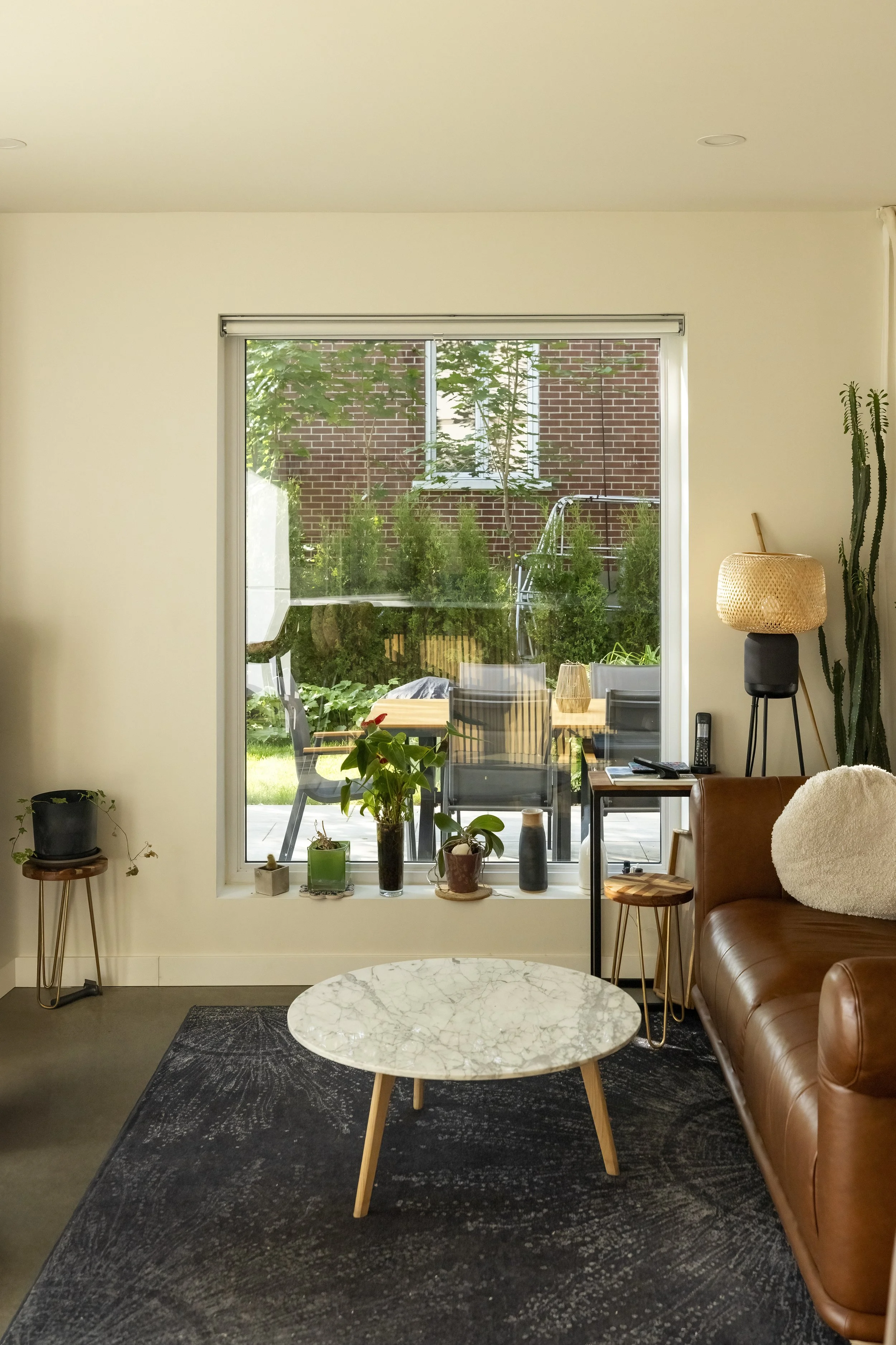 La matérialité douce et contemporaine de l’agrandissement s’harmonise avec la brique rouge d’origine et en rehausse la beauté. Par ce mariage entre ancien et nouveau, la Résidence GN illustre une manière sensible d’adapter une maison familiale aux besoins actuels de ses occupants, sans renoncer à la richesse de son caractère ni à la beauté de son environnement.